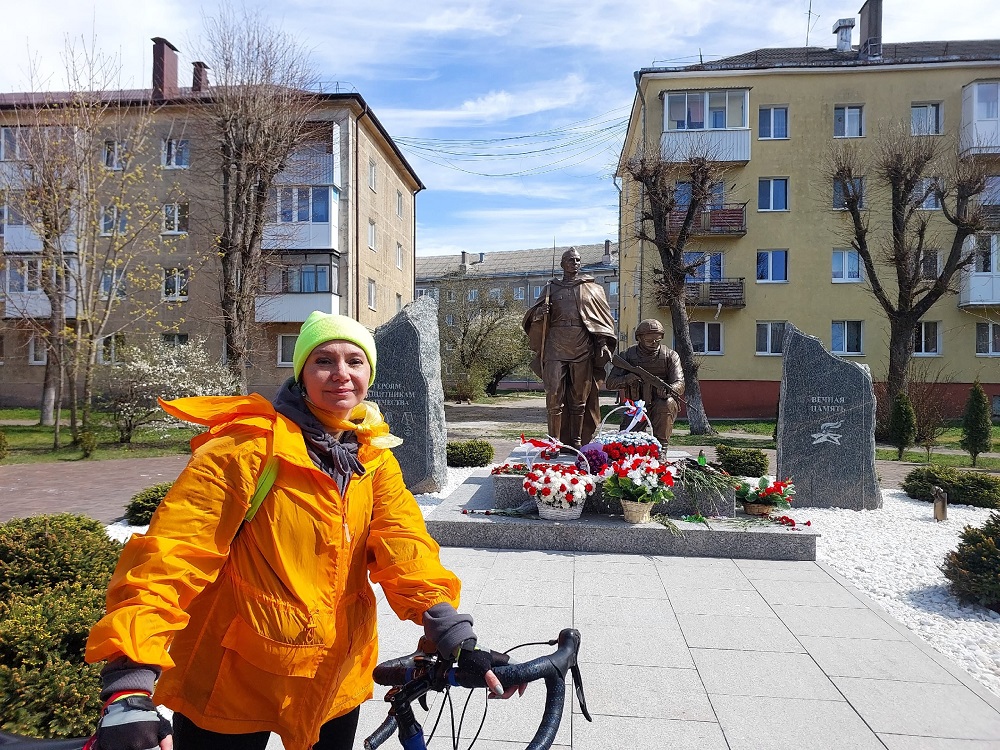 И одна из целей вело-прогулки была посмотреть новый памятник "Воинам ВОВ и СВО" - одна из фигур изображает красноармейца в плащ-палатке с винтовкой с примкнутым штыком, а вторая — экипированного штурмовика с автоматом Калашникова. Он был открыт 10 дней назад, можно сказать, мы одними из первых побывали на этом мемориале. Почтили и помолчали.