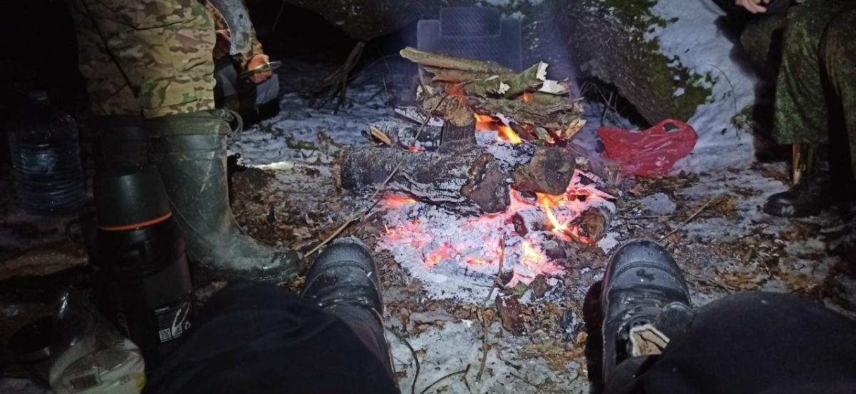 Как и обещалось: каждый участник нашёл себе в нём посильную ношу - кто-то прошёл маршем в наши мокрые Калининградские -8°C 16 км по заснеженным полям и лесам! (шли целый день, вернулись затемно), кто-то остался на хозяйстве в лагере и варил суп. Также и ночь пережили без потерь и без новых соплей (никто не заболел).