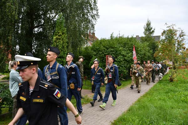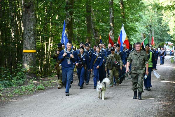 Участники преодолевают дистанцию в режиме гражданского похода с отданием воинских почестей героям!